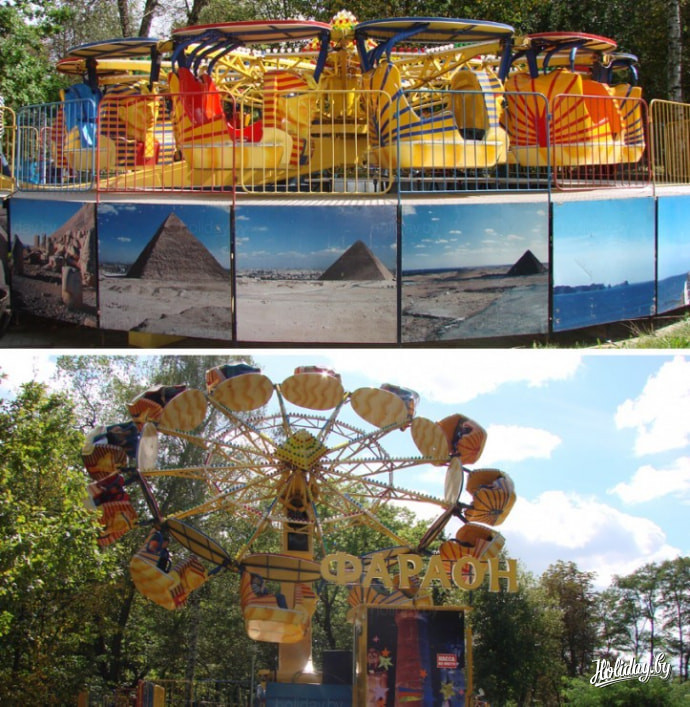 Аттракцион «Фараон Энтерпрайз», стоимость - 5,000 рублей в будние дни и 5,500 – в выходные. Принцип катания Центрифуги, т.е. аттракцион на любителя.