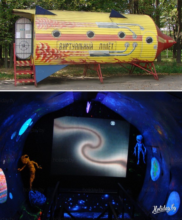 Аттракцион «Виртуальный полет», 3000 рублей. Цена не изменилась в сравнении с прошлым годом, да и желающих посетить этот аттракцион тоже не прибавилось. Хотя очень странно, ведь детям очень нравится познавать секреты инопланетных цивилизаций. Видимо, непопулярность аттракциона связана с его немного неудачным расположением: он находится за «Ракушками» и сразу даже как-то незаметен.