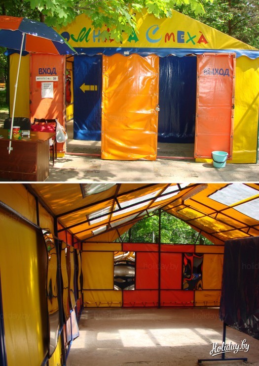 «Комната смеха», 2500 рублей. Немного удивило подорожание этого аттракциона (на 500 рублей). Он и так не пользовался успехом, а тут и вовсе его перестали посещать. Очень странно, что комната смеха не меняется с советских времен. Большинству посетителей там уже совершенно не с чего смеяться. Намного интереснее установить программу кривого зеркала себе на компьютер и веселиться вместе с друзьями над чудесами веб-отражения.