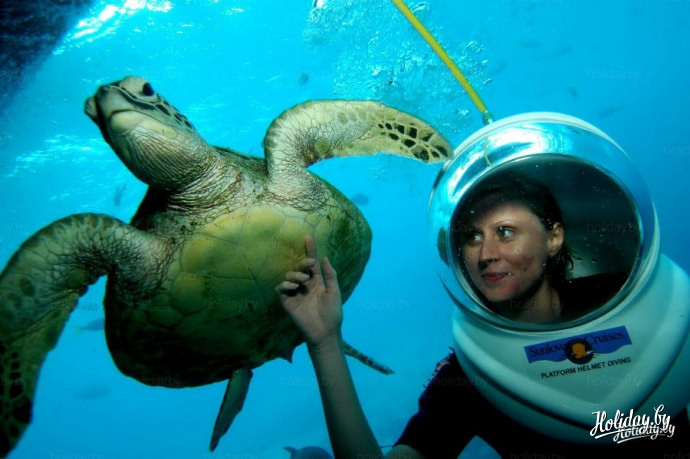 Аттракцион расположен на коралловом рифе, куда можно попасть на 30-минутную познавательную прогулку в сопровождении экскурсовода. Вокруг путешественников кружат стаи рыбок и обитателей поопаснее.