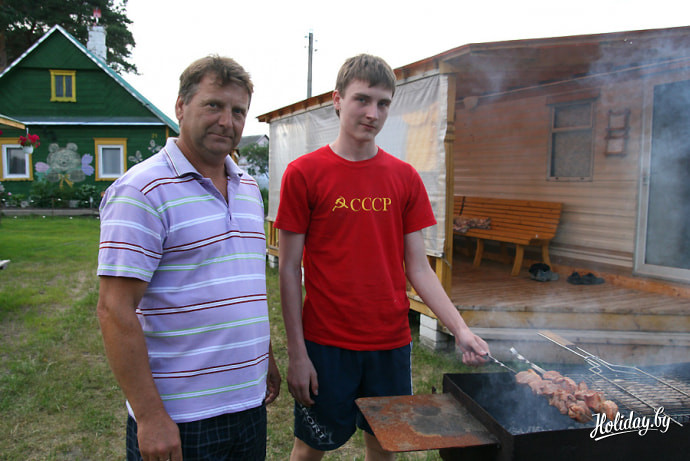 Владимир Адамович с сыном Женей - владелец сельской усадьбы "Чистые" для отдыха на Браславских озерах. В прошлом - инструктор базы отдыха "Дривяты" - очень опытный и полезный туристам человек.
