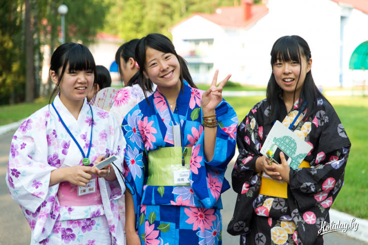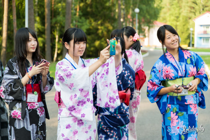 Японским ребятам действительно было некогда скучать. Кроме насыщенной экскурсионной программы, их ждала масса необычных мероприятий в «Родничке». Так, например, один день был полностью посвящен стране Восходящего солнца. Японские ребята выступили в роли гидов, они знакомили белорусских сверстников с культурой и обычаями своей страны. «Тематические секции» расположились в беседках на территории «Родничка»: в одной из них можно было научиться правильно надевать кимоно, в другой – отведать национальные блюда, в третьей – постигнуть азы каллиграфического письма, в четвертой – попробовать сложить фигурку из бумаги в технике оригами.