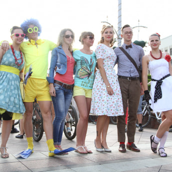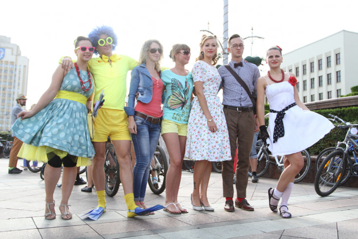 День стиляг на велосипедах прошел вечером 17 августа в Минске. Около пятидесяти молодых людей на велосипедах и яркой одежде прокатились по главным улицам столицы. К велопробегу могли присоединиться все желающие. Главное условие участие – дресс-код в формате 1960-х.