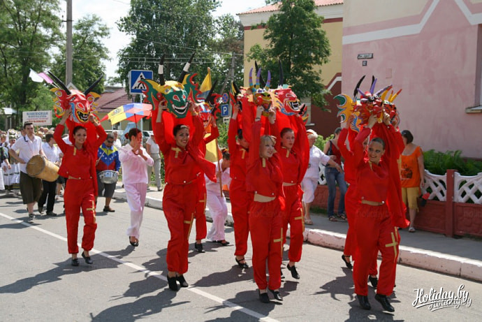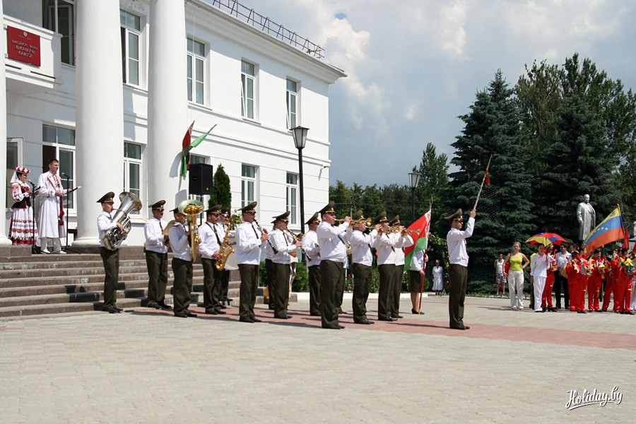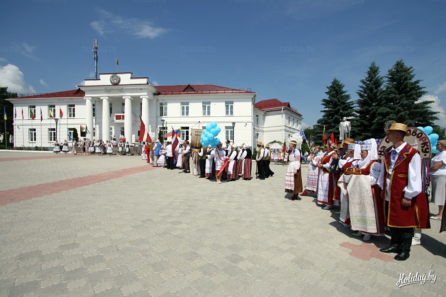 Трэш-микс из официоза, патриотизма и тяжелого бреда режиссера действа. Почетный гражданин края и Мисс Браслав в едином порыве под пристальными взглядами пенсионеров и властей поднимают флаг города. Да, и Ленин там был...
