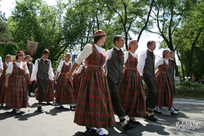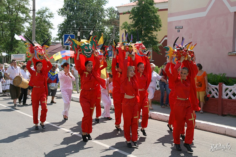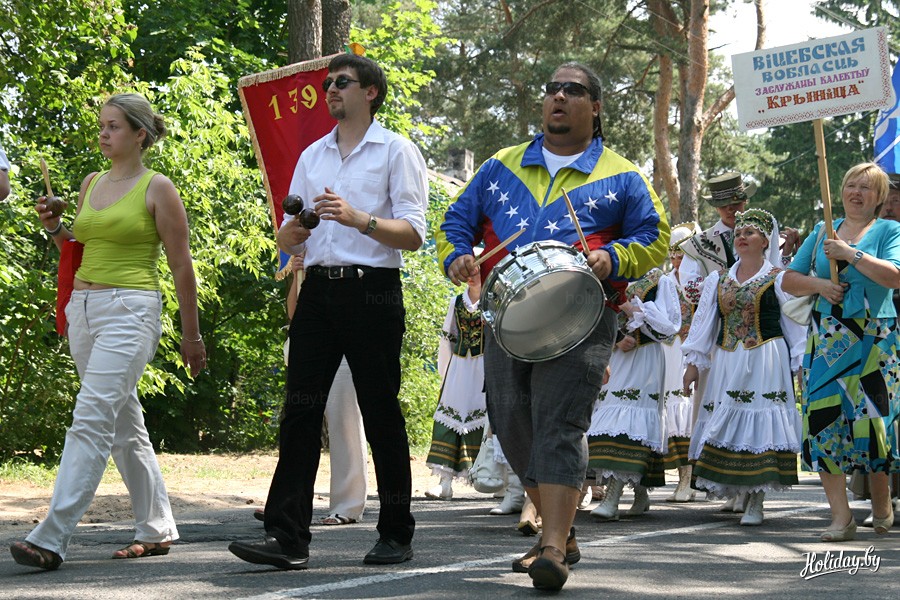Шествие участников "Браславских зарниц" от площади к парку "Лесничевка" вызвало у меня много эмоций. Точнее их должны были вызывать шествующие. Зажигали только интуристы. "Лабусы" взявшись за руки пританцовывали, приветствовали местных жителей, плясали. "Наши" - как на военном параде. Вот как подняли флаг так и понесли по-пионерски. Одним словом, тон задали приезжие...