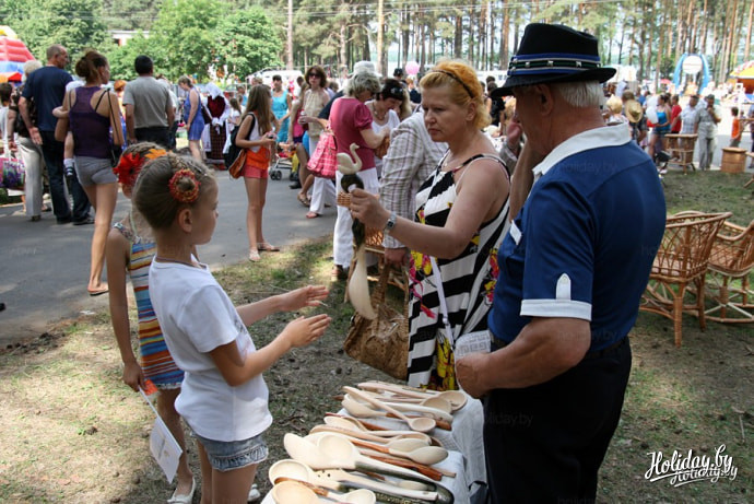 Не могу не рассказать «прикол» стенда агроусадеб Браславщины. У владелиц на столе находились три фигурные бутыли с соками. Жидкости разного цвета в необычных бутылках привлекали настолько много народу, что это задержало меня около стенда надолго. В отсутствие алкоголя на празднике многие, увидев бутыли, устремлялся на дегустацию. Видно, думали, что в сельских усадьбах Беларуси только самогон и подают. Однако тара так и не опустела и под конец праздника – только свои к ним прикладывались. Никто из подошедших не попробовал домашних соков. Только расстроенные взмахи руками под почти возмущенное «Да ну вас, эх!»