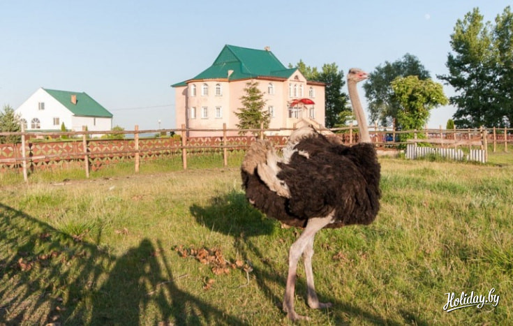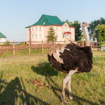 Шикарный двухэтажный дом в аренду для 30 человек, на берегу озера располагает к релаксу – можно расслабиться в каминном зале, глядя на потрескивающий в очаге огонь, а можно с друзьями или деловыми партнерами разыграть партию в бильярд, под хороший фильм – здесь есть домашний кинотеатр со спутниковым ТВ. Тоску и усталость поможет выгнать сеанс крепкого пара в бане и сауне с бассейном, расположенной здесь же, в усадьбе «Споровская». К услугам посетителей множество водных развлечений и особая экзотика – страусиная ферма.