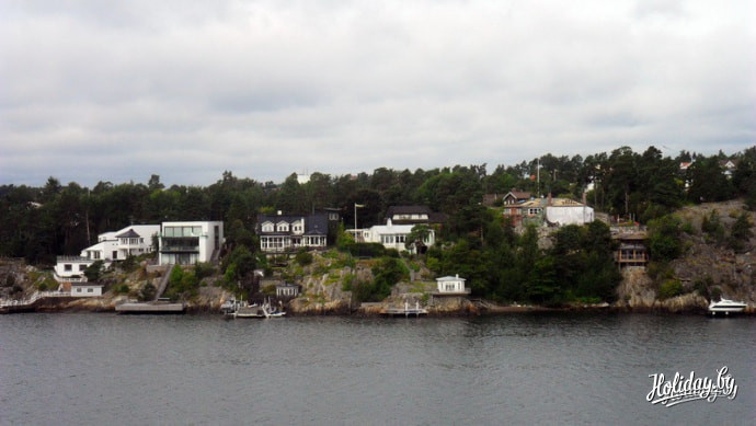 Ближе к шведской столице "дачная" застройка становится гуще. Обратите внимание на неприступные берега. Точно так же выглядели набережные в самом Стокгольме: люди просто не имели технологий, способных справиться с прибрежными скалами. Потом, в 1867 году, местному жителю Альфреду Нобелю надоело карабкаться по опасным уступам, он изобрел динамит и взорвал все к чертовой матери... то есть, я хотел сказать, научил шведов делать красивые ровные набережные.