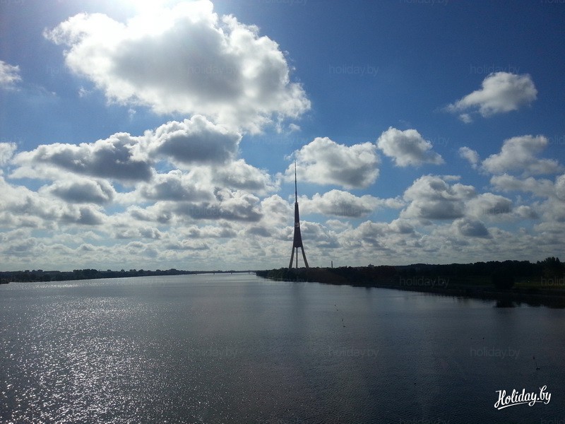 Итак, отправление из Минска в ночь с четверга на пятницу. Белорусско-литовская граница стремительно пройдена около 2 часов ночи. И вот, вроде, едем всю ночь по Прибалтике, а утром сюрприз - белорусская река. Знакомая Западная Двина. Правда, уже с иностранным именем - Даугава. И на ее правом берегу танцует Рижская телебашня, известная наклонными лифтами в своих ногах-опорах.