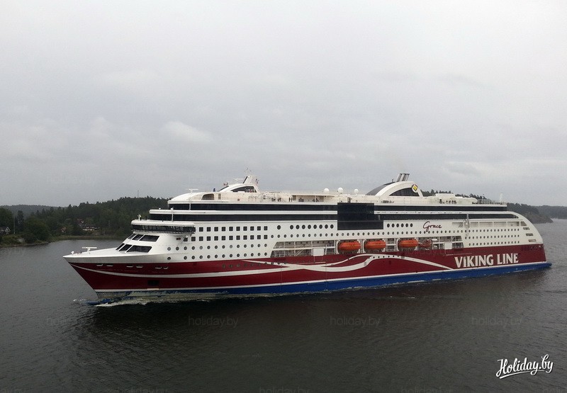 Наш паром, идущий из Риги в Стокгольм по четным дням, назывался "Изабель" - только в мае он сменил морально устаревший и менее вместительный паром "Фестиваль". По нечетным ходит однотипное судно "Романтика". Нам никак не удавалось снять свою "Изабель" целиком, поэтому придется показать здесь схожий паром "Грация", с которым мы разминулись на подходе к Стокгольму.