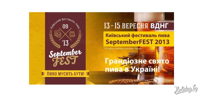 Прекрасная возможность отведать блюда украинской кухни, а также более 100 сортов пива от известных пивных брендов появится у тех, кто отправится в Киев 13-16 сентября. Именно в этот период в столице Украины организуется самое яркое событие осени - фестиваль пива September FEST 2013. Гости фестиваля получат уникальную возможность принять участие в конкурсе «Народная дегустация», где будут определены лучшие сорта пива и закуски к нему. В рамках фестиваля будет работать национальная ярмарка пива, где каждый посетитель сможет попробовать этот напиток из лучших пивоварен, в том числе и уникальные сорта пива, сваренные специально для праздника. Скучать гостям фестиваля не придется: культурная и развлекательная программы представлены разнообразными конкурсами и акциями от организаторов, спонсоров и участников фестиваля, выступлениями украинских и зарубежных артистов и коллективов, среди которых «Ляпис Трубецкой», «Скрябин», «O.TORVALD», Lezo Terezy, Without Limits, ДМЦ, «Небо SK», «Восьмой День», Well, а также «Коло Дий» и др.