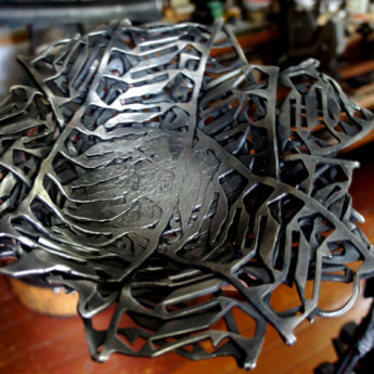 - Чтобы найти интересное решение, я ставлю себе условия, за рамки которых пытаюсь не выходить: ничего не отрезать, не прибавлять. Работаю только трансформационным способом: нагреть, растянуть, согнуть, нанести фактуру… Получается, своего рода, «оригами из металла»: трансформация плоскости в объем, из объема в другой объем, и наоборот - объем в плоскость и т.д. В результате - цельно, компактно, стильно.