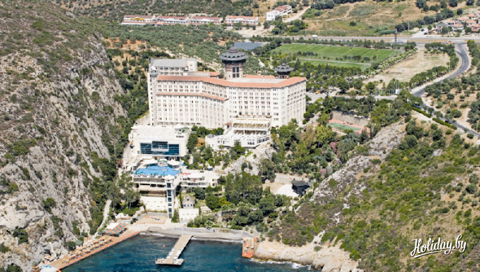Самолеты вылетают в Турцию прямо из Минска по понедельникам, четвергам и субботам. Вы можете выбрать тур на 7-15 ночей. А располагаться будете рядом со знаменитыми достопримечательностями. Античный город Эфес и Дом Девы Марии, можно назвать соседями отеля. Всего пять минут ходьбы, и вы попадете в известный центр развлечений. Отель словно вырублен в скале, а вокруг склоны холмов, красивая природа, хвойные деревья и чистейший воздух.
