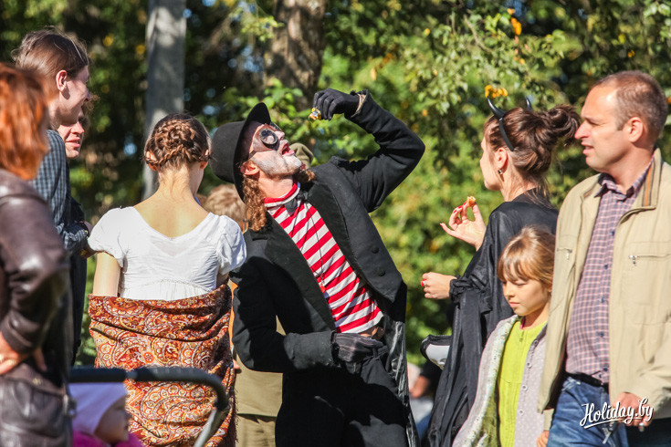 Поэтому по улицам Ивенца и возле усадьбы Драгунцева собрались уже известные постоянным гостям персонажи – от кикимор болотных из Налибокской пущи до революционно-пролетарски настроенных элементов, будто бы пришедших из дома, а не музея РСДРП. Весь цвет белорусской истории, одним словом! Главными же героями традиционно были шляхтичи и шляхтенки – под атмосферную музыку велись беседы про будущее Родины образца XVIII века, случались «двубои», заканчивающиеся шумным братанием.