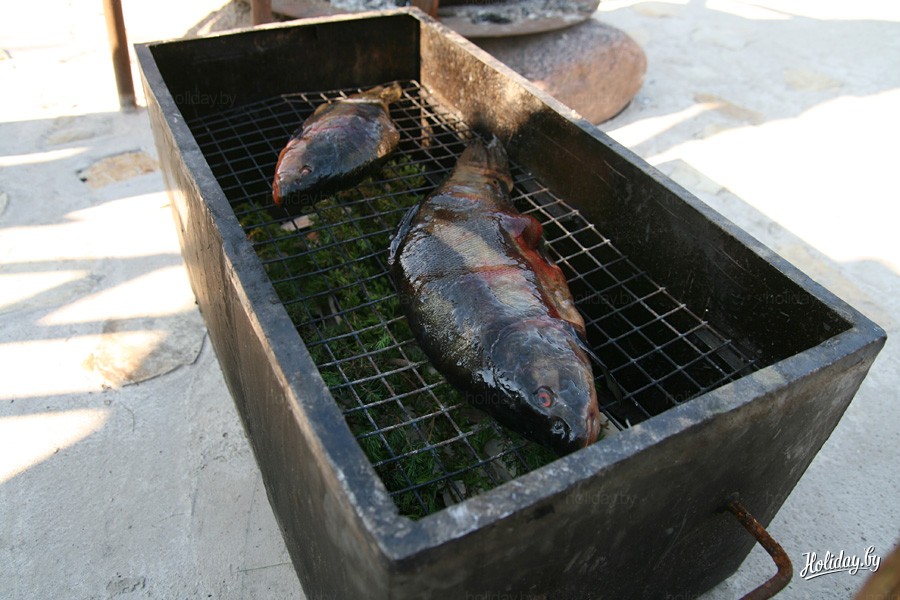 Рыба в усадьбе "У Борисовича" коптится фирменным способом - на можжевеловых ветках