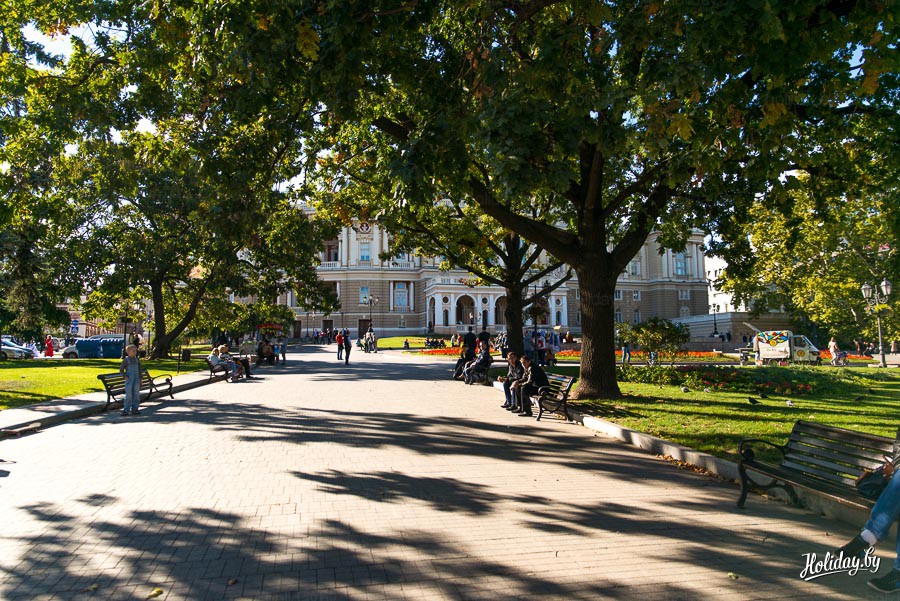 Следующим пунктом нашей прогулки стал городской сад Одессы. Здесь есть поющий фонтан и круглая крытая сцена, где устраиваются концерты. Нам повезло, мы подошли к началу концерта. Артистами были студенты одного из Одесских университетов, зрителями – жители Одессы и туристы. Любопытно, что публика собралась самая разная: от малышей, которые пришли с родителями, до одиноких стариков, сидящих на скамейках. Причем, весело было всем. Одни подпевали «Ты одессит, Мишка», другие - танцевали, третьи и вовсе водили настоящие хороводы.