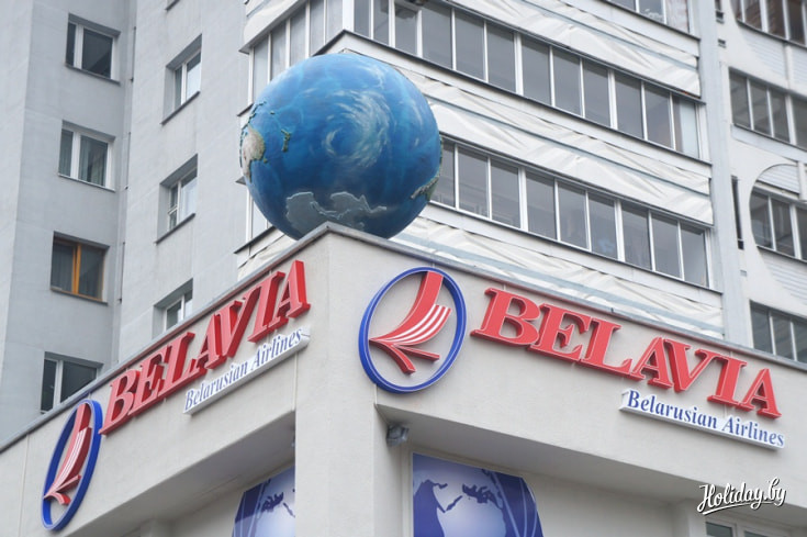 В последний день октября на здании центрального офиса Национальной авиакомпании «Белавиа» появился стильный аксессуар – огромный глобус. Словно вишенка на торт, он был водружен на макушке здания по ул. Немига, 14.
