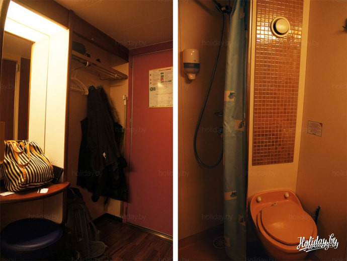 Для путешествия мы заранее выбрали антиаллергенную каюту «А класса» на 4-х человек. Она включает в себя небольшую гардеробную, душевую комнату с туалетом, 2 кровати снизу, 2 сверху, столик, иллюминатор. Постельное белье включено.