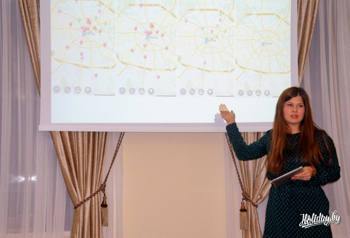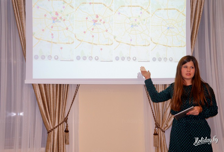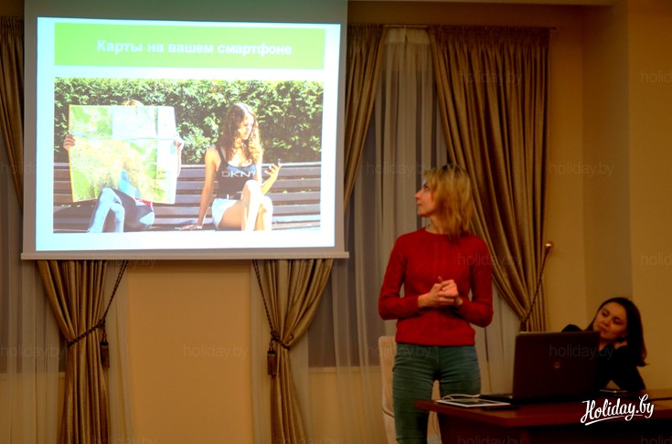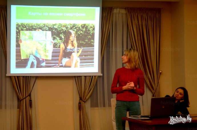 В начале презентации гостей поприветствовала директор по маркетингу Алена Миранович. Она отметила, что пользоваться приложением, не только удобно, но и полезно для путешественников. Так, например, недавно в гости к команде MapsWithMe пришла одна из туристок и рассказала, что во время недавней поездки в Италию она по совету друзей закачала в смартфон офлайн-карту MapsWithMe с картой Италии. По сути, это был ее единственный помощник в незнакомой стране. Ведь девушка не знала ни итальянского, ни английского языков. Однако путешествие ей понравилось, она даже ни разу не заблудилась. Алена Миранович также уделила внимание вопросу покрытия карт MapsWithMe. Она подчеркнула, что высокий уровень детализации карт сегодня есть практически во всех странах Европы, Азии, Африки, Австралии и Океании.