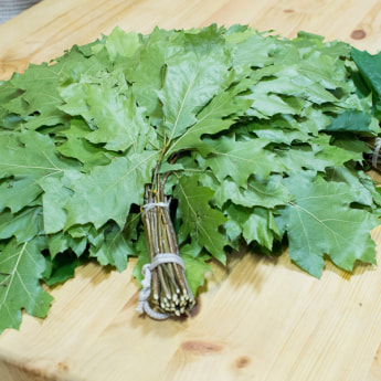 Я же люблю начинать парение именно с дубового веника – предпочитаю дуб остролистный или дуб канадский, красный, как его называют. Веник делаю в форме веера, большой теннисной ракетки – таким веником хорошо нагнетать воздух, знакомить тело с баней, процедурами, делать первоначальные легкие прикосновения, чтобы человек прочувствовал, что его ожидает. Ведь баня – это не «избиение младенцев», а парение и оздоровление. Дубовый веник наиболее теплоемкий, им хорошо прогревать тело и делать компресс. Им хорошо прогревать поясницу, ноги, пятки, особенно когда промочили ноги и температуры еще нет. Дубовый веник позволяет хорошо прогреть тело почти до самых косточек.