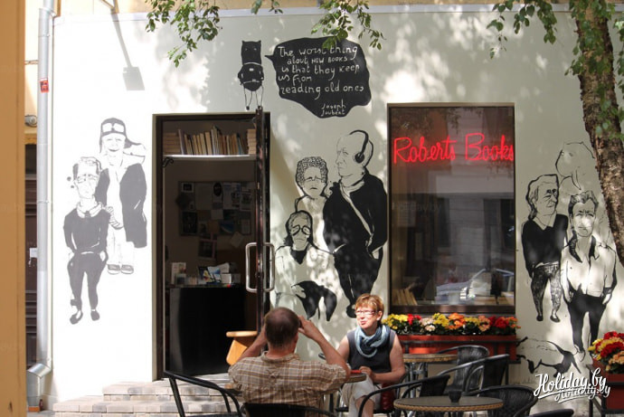 Между этими двумя точками – бесчисленное множество прекрасных мест в Риге, где усталый путник может выпить чего-то бодрящего, от холодника до холодного карамельного кофе. Например, чайная с огромной деревянной террасой, разноцветными подушками, сияющими самоварами, крошечными чашечками на подносах и синицами, норовящими присоединиться к трапезе. Например, велосипедное кафе, открытое увлечёнными людьми – здесь вегетарианская еда, буккроссинг, мастерская по ремонту велосипедов, выкрашенные белым стены (кое-где на которых встречается велосипедный руль), длинные сэндвичи с томатами и моцареллой.