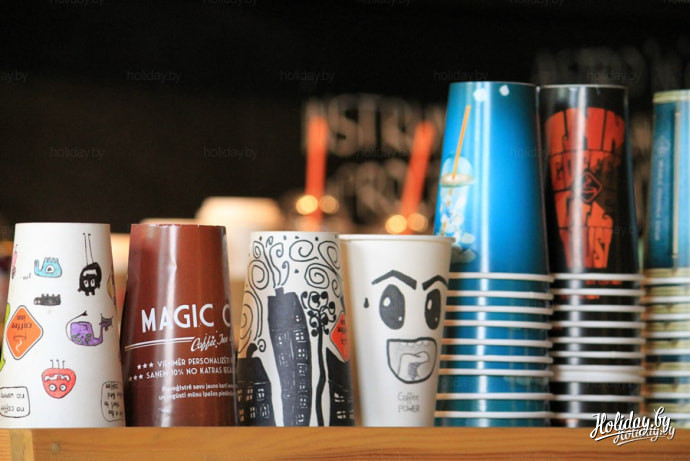 В своё любимое кафе в Риге заходишь случайно, за сорок минут до поезда, просто выпить двумя глотками чашку кофе по пути, а там оказывается небольшое помещение с разноцветными стенами, васильками на столах, рисованными комиксами на стенах в туалете, с зелёным искусственным мхом на барной стойке, со стенсилами рысей и орлов на потолке. Кофе у них нету, и тогда нужно попросить хозяйку сделать какой-нибудь чай на её вкус. В результате она приносит чашки с блюдцами из бабушкиного сервиза (красные в белый горошек) и пол-литровый чайник, где на вкус распознаётся только мята. Кроме мяты в чайнике ещё что-то кисло-сладкое, невероятно вкусное, и я пью этот жидкий мёд обжигая язык, обжигая взгляд о стоящие рядом и сияющие синим васильки.