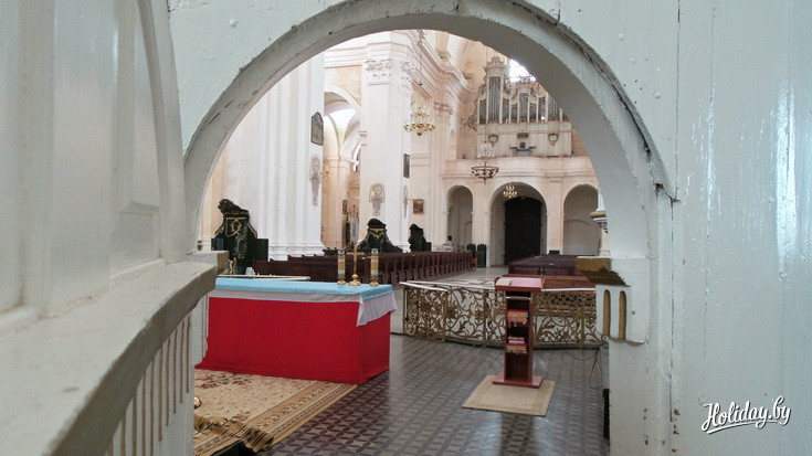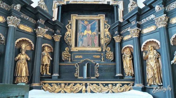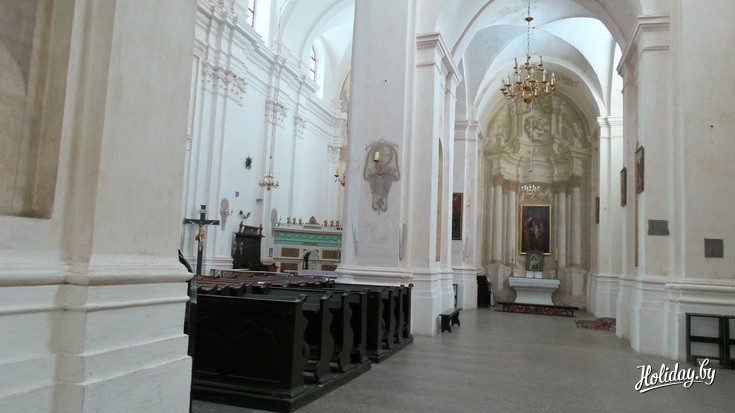 Не найдя здания штаба времен первой мировой войны - даже местные старожилы не могут предположить о его местоположении - мы решаем посетить костёл, как одну из жемчужин архитектуры барокко в нашей стране. "Базилика минорис" в Будславе впервые упоминается в 1633 году, в дальнейшем храм перестраивался в 1767 - 1783 годах. В костеле хранится признанная чудодейственной икона Матери Божьей, подаренная в конце XVI века Папой Римским Климентом XVIII. В костеле любопытен факт, что боковые алтари искусно нарисованы на плоских стенах, что создает необычное ощущение и эффект масштаба.