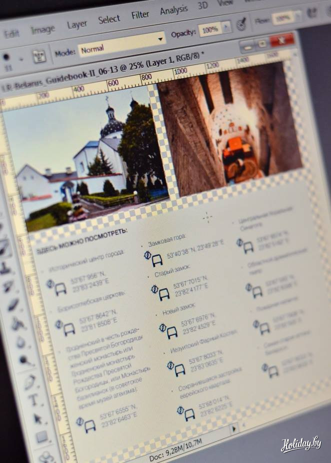 Путеводитель по Беларуси от Land Rover. Верстка книги на экране компьютера