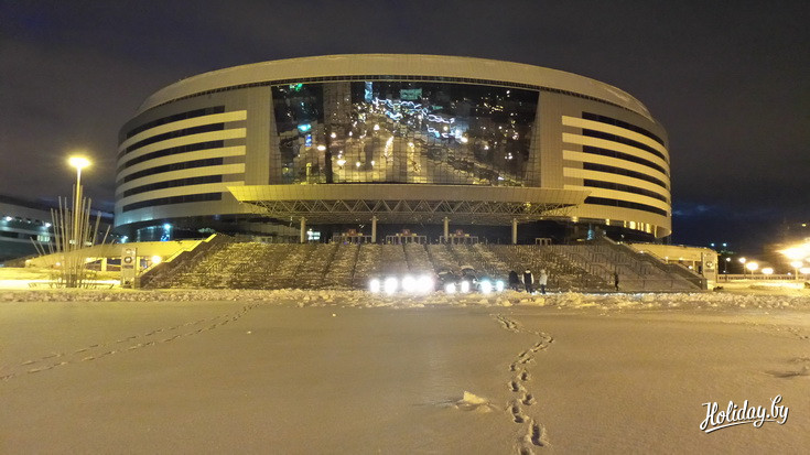 Финальной точкой автопробега стала, конечно же, "Минск-Арена". Именно на ней произойдут "ледовые бои" в рамках Чемпионата мира по хоккею в Минске в 2014 году. Уставшие, но нашедшие-таки боевой дух белорусов, участники экспедиция прибывают в Минск.