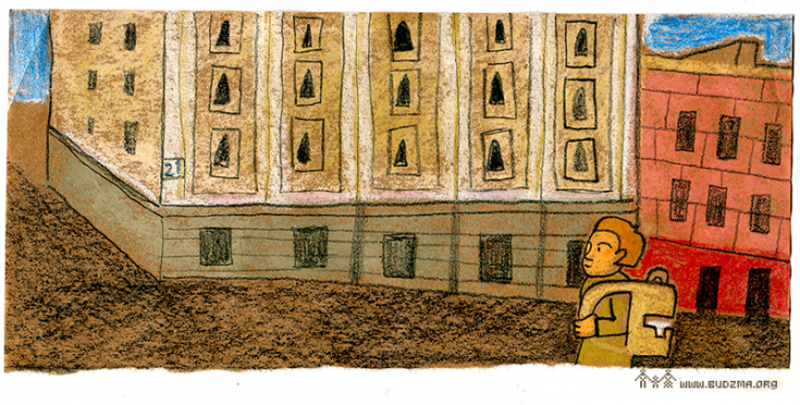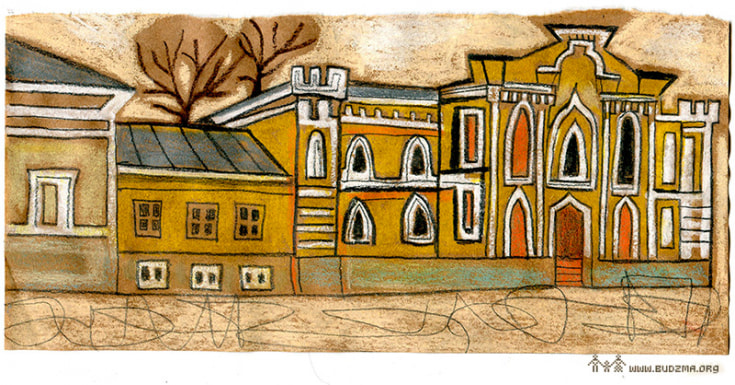 Будынак – габрэйская мужчынская вучэльня 1912 года. Магутная лесвіца, таўшчэзныя сцены… Незабыўныя лекцыі Васіля Сёмухі, Лявона Баршчэўскага, Андрэя Хадановіча. Па-беларуску ўсё: нават матэматыка са спадарыняй Нінай, хімія са спадаром Юрасём і фізкультура са спадаром Міхасём.
