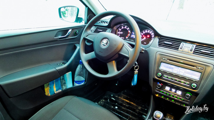 Двигатель 1.6 литра, 105 сил, явно от того же Polo Sedan, руль пластмассовый совсем, но кресла передние удобные и диапазон регулировок впечатляет. Рулевая колонка, к примеру, даже по наклону регулируется, что в бюджетном сегменте редкость. На следующий день, пересел на второй ряд сидений, приятно удивившись не только завидному пространству для колен, плечей и макушки, но и тому, что, по словам севшего за руль коллеги, ни одно из моих ворчливых замечаний не соответствовало истине в его ощущениях. Не вытерпев, я сел за руль сам, бросив взгляд на счетчик пробега – 1069 км. И что бы вы думали? Нет, Rapid не полетел, но уж точно поехал.