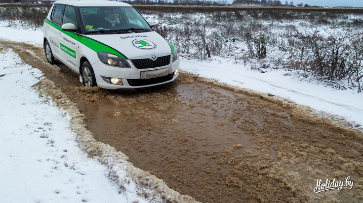 В последний день путешествия мне удалось поездить на Škoda Yeti, да не просто поездить, а убедиться, что не зря его называют именем легендарного лесного и горного жителя. Был в нашей программе пункт, где мы покатались по пустующему мотодрому. Горки, лужи, скрытая под снегом колея. Yeti прошел все с легкостью, которая порадовала еще сильней, когда мы узнали, что версия-то… переднеприводная!