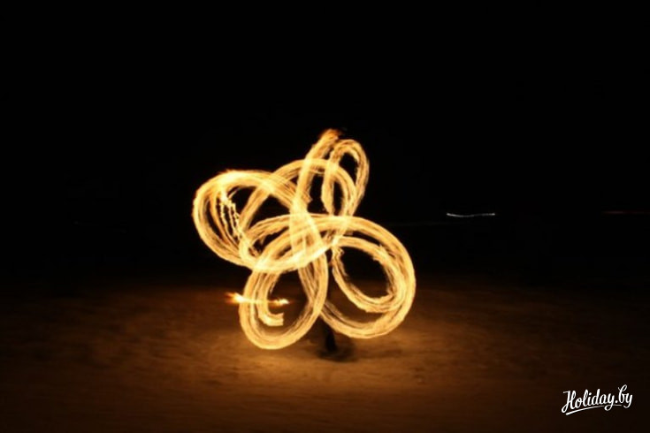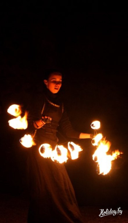 После окончания всего нас ожидал еще один сюрприз – фаер шоу от лидской фаер-бригады «Огненные вороны». На улице стемнело, пошел небольшой снег и поднялся ветер, но это не стало помехой для выступления с огнем. Стоило нам выйти за стены замка, всех тут же расставили по местам вдоль линии огней и девушка, поприветствовав всех, объявила начало. Заиграла приятная музыка и началось шоу. Ребят было трое, но в ходе всего номера казалось, что их больше. Наличие разных инструментов, технически высокая подготовка и полная невозмутимость на лицах, несмотря на погодные условия, вызывали лишь уважение, но вскоре и этот номер подошёл к концу и всем стало ясно, что сюрпризы и развлечения закончены.