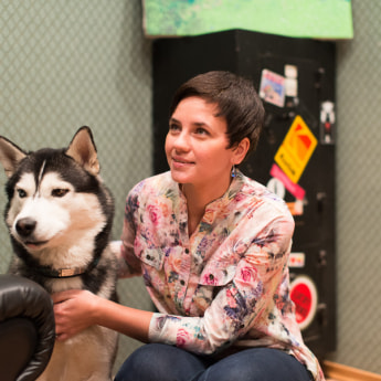 За прохождением "Паспортного контроля" следил любимец семьи хаски Вайс