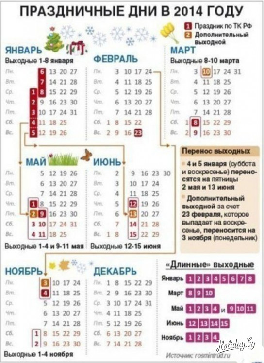 Как будут перенесены рабочие дни в наступающем году? Сколько праздничных дней будет на Новый год 2014, и какие традиции в этом вопросе есть у соседних стран? Ответы – в нашем материале.