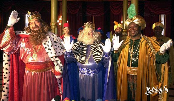 В этот день на улицах городов и деревень Испании проходят праздничные шествия - три короля разъезжают со своей свитой на роскошной карете, разбрасывают сладости, а вокруг всей этой процессии происходит целый карнавал. По легенде, короли - это три волшебника, которые пришли к новорождённому Иисусу, чтобы одарить его подарками. В Испании они также символизируют три расы - один из королей представитель Африки, другой - Европы и третий - Азии.