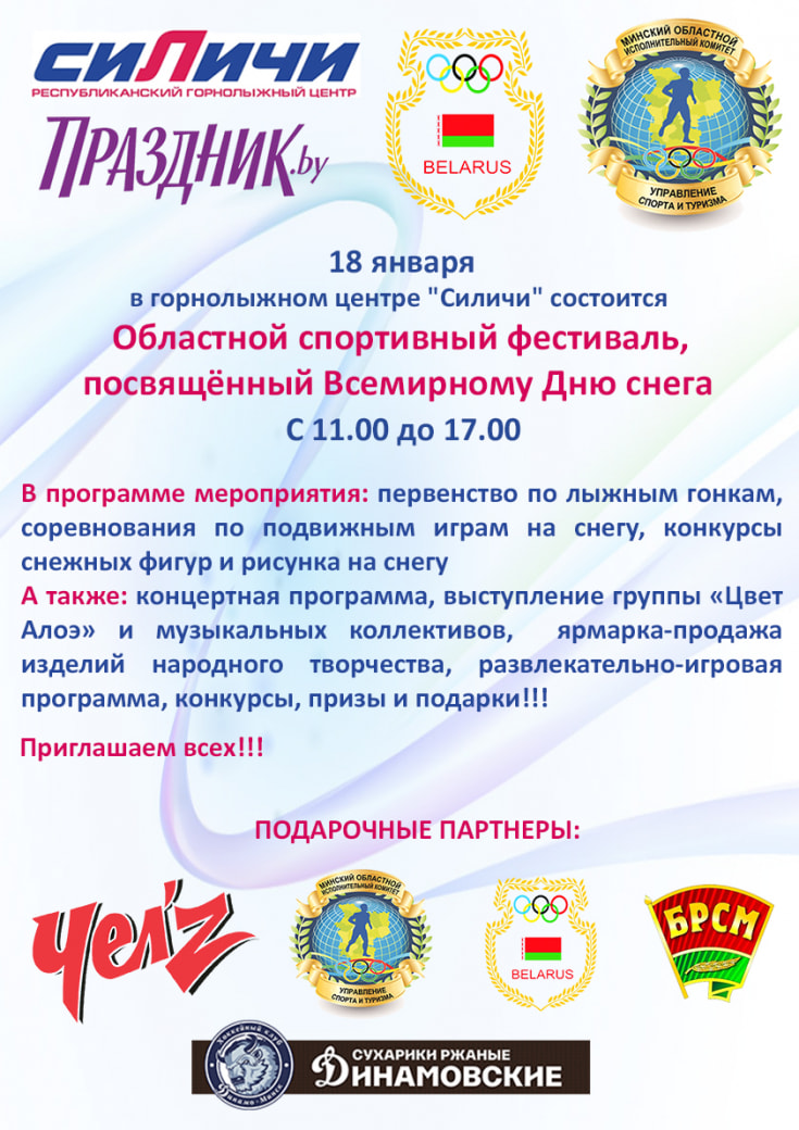 Горнолыжный центр "Силичи" 18 января, во Всемирный день снега, приглашает на Областной спортивный фестиваль.