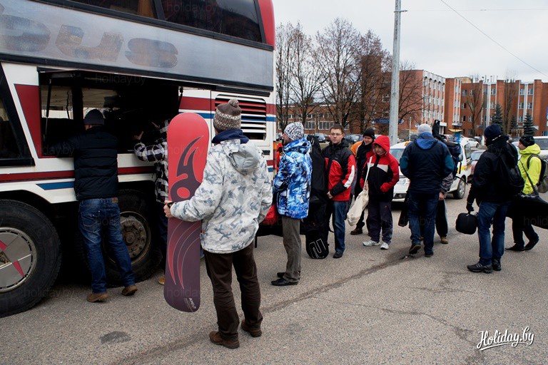 Полчаса…Багаж, лыжи и сноуборды на месте, туристы заняли свои места, пора отправляться в путь.