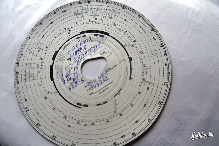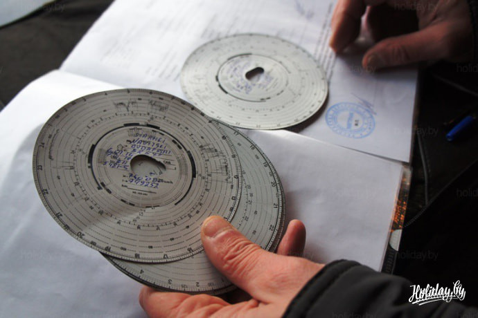 - Тахограф фиксирует график работы каждого водителя. Мы меняемся через каждые 4 часа. Пересаживаемся с места на место, меняем шайбу, и можно продолжать движение, - рассказывает Сергей Новицкий. – В конце поездки «шайбы» вместе с остальными документами сдаются руководству. После недельного путешествия на автобусе – общее время отстоя машины - сутки.