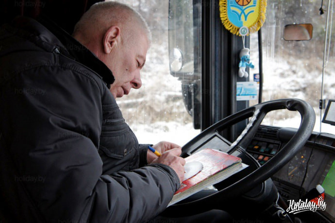 Водители нам действительно попались не только профессиональные, но и позитивные. Сергей Новицкий, например, несколько раз спрашивал у пассажиров, тепло ли им в салоне. А когда в проходе накопилось «снежная каша», то на одной из санитарных остановок, аккуратно вымел ее.