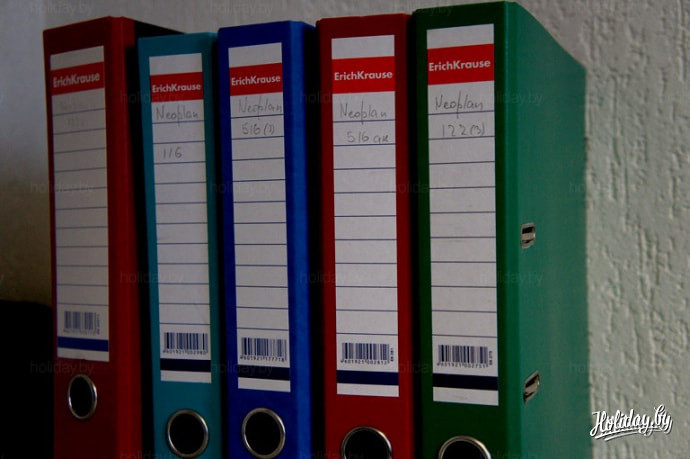 Все необходимые бумаги для каждого автобуса хранятся вот в таких папках
