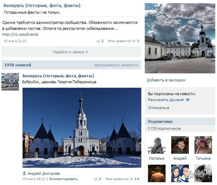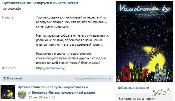 И про интересные места Беларуси рассказывают, и фотографиями подтверждают, и даже конкурсы проводят. И не беда, что турфирме группа принадлежит. Зато живая. Сейчас в ней 348 участников.