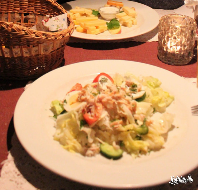 Не верьте эстонским официантам! Салат рассчитан на 1 человека. Но порция достойна и двоих едоков. Сочетание интересное, хотя ничего эксклюзивного: копченая рыба, яйца, овощи. Интересно попробовать эстонские сыры. К сожалению, в ресторане только производимые промышленным путем, домашних нет. Отмечу, в сочетании «цена – граммы» самый дорогой пункт. Столько же стоила и свиная рулька.