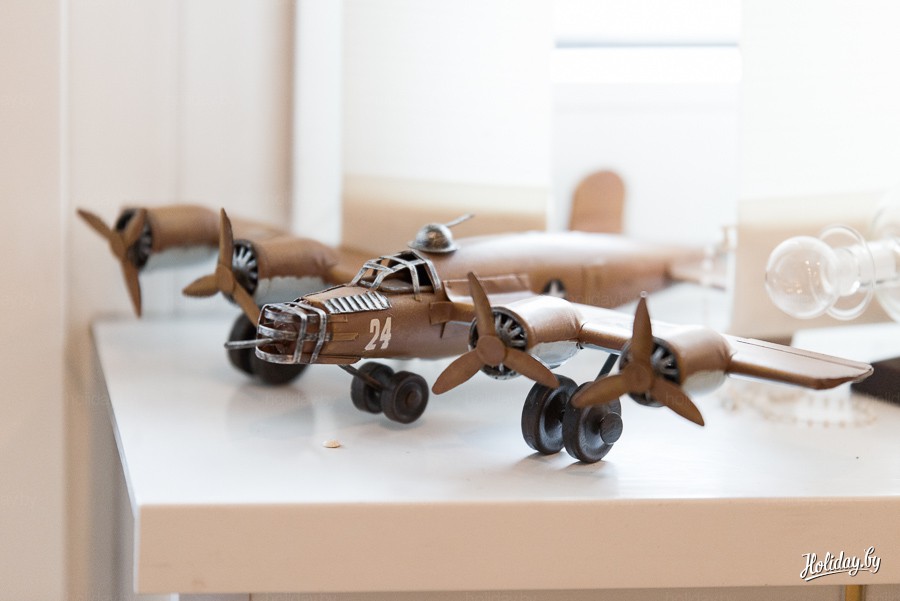 - Они все более-менее любимые. Просто некоторые из них таят в себе очень интересные истории. Вот, предположим, стоит «Аэрофлот» советской раскраски. Ему, наверное, уже лет 35. Он спасен из пожара. Офис «Аэрофлота» в Варшаве горел (произошло замыкание кондиционера), сгорели почти все модели, а эта осталась. Мы в то время, как раз в субботу это было, с представителем «Аэрофлота» пошли париться в бане. И в этот момент звонит охранная фирма и говорит, мол, у вас пожар в офисе. Мы буквально в мыле выскочили из бани, приехали на место. Там пожарные, полиция, огня уже нет, потушили. Модель самолета этого стояла тогда в огромной витрине на первом этаже. Остальные экспонаты оплавились, а этот просто закоптился. Поэтому сейчас он немного желтоватый, в идеале, конечно, белее должен быть (улыбается). Отмывал его потом очень долго от копоти.