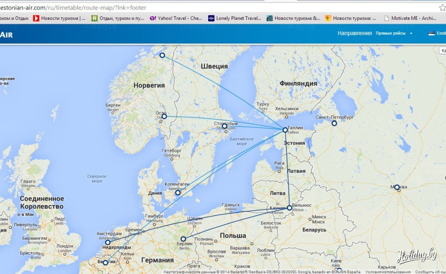 Сегодня из Вильнюса без пересадки бюджетно долететь с Estonian Air можно в Амстердам, Брюссель, Берлин, с ожиданием в Таллинне – в Копенгаген, Таллинн, Осло, Тронхейм (Норвегия), Стокгольм.