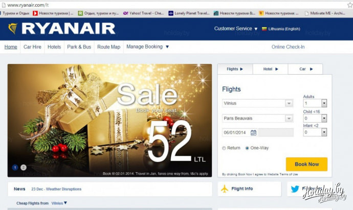 Ryanair по праву считается бюджетной авиакомпанией номер один в Европе. Основана в Ирландии в 1985 году. Штаб-квартира расположена в Дублине. Всего в маршрутной сети более 1600 направлений. Из Вильнюса вылетает в 14 направлениях – Испания, Франция, Ирландия, Италия, Норвегия, Великобритания, Бельгия, Кипр, Германия. Среди городов как популярные Барселона, Париж, Дублин, Рим, Осло, Милан, Лондон, Брюссель, так и небольшие в сравнении с ними Ханья, Корк, Ливерпуль, Бремен, Дюссельдорф. К слову, и без акций направление Брюсселя у Ryanair, как правило, одно из самых бюджетных – забронировать дешевые авиабилеты можно практически всегда. Стоит почаще заглядывать на официальный сайт компании www.ryanair.com, где всегда можно «поймать» акцию по самым популярным направлениям.