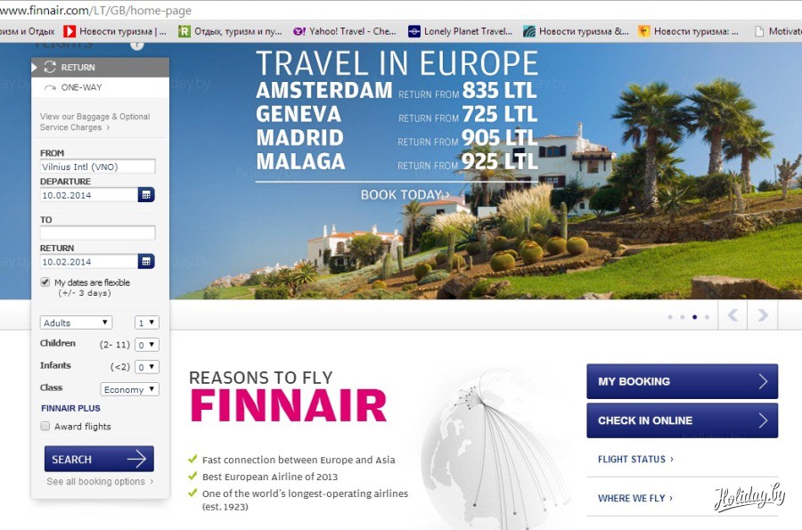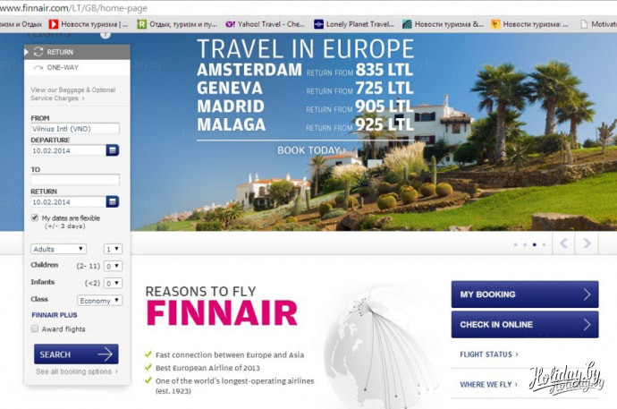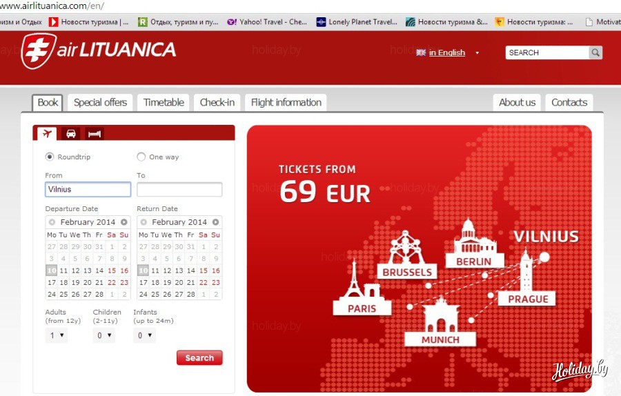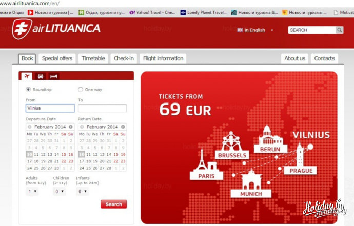 Заказать авиабилет Belavia из Минска в Вильнюс на Holiday.by