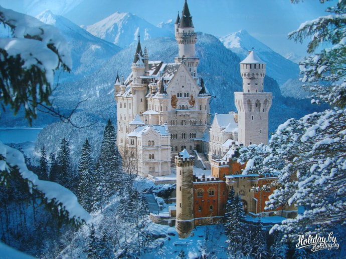 Он построен в 19 веке Людвигом II Баварским. Архитектура сочетает множество стилей и направлений. Ежегодно взглянуть на замок приезжают более 13 миллионов посетителей из всех уголков мира. Рядом, кстати, располагается еще один замок – Хёешвангау.