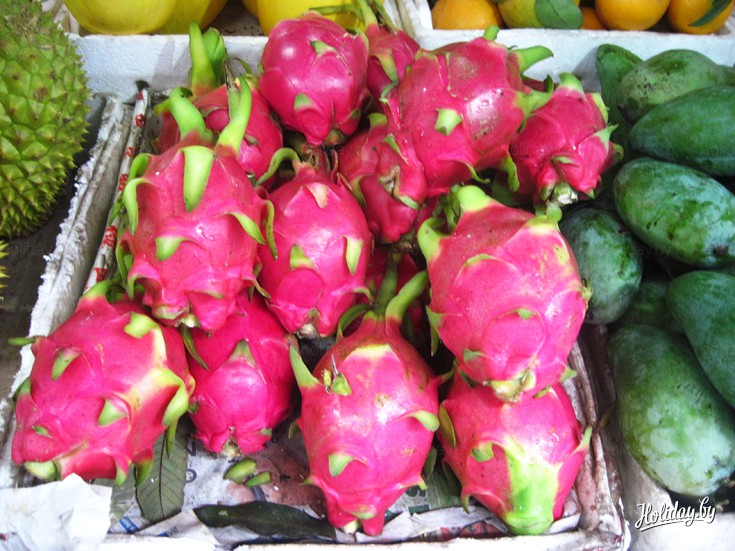 Если вы начитались романов о доблестных рыцарях, побеждающих драконов, и страдаете, что всех чудовищ уже извели, то следующие фрукты для вас. «Сердце дракона» - именно так называется красный плод, который сразу даже я приняла за разновидность редиса или капусты. Вкус у него нежный, слегка сладковатый, но не ярко выраженный, отдаленно напоминает белую садовую землянику. Так, слегка. Мякоть с маленькими черными семечками легко можно достать ложечкой.