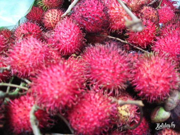 Вот этот странный плод с красной волосатой оболочкой, чем-то напоминающий наш родной каштан, называется на местном наречии «нитие». Их можно найти в больших торговых центрах в Минске, очень часто этот фрукт используют для декора при подаче изысканных десертов. Вкус кисловато-сладкий.